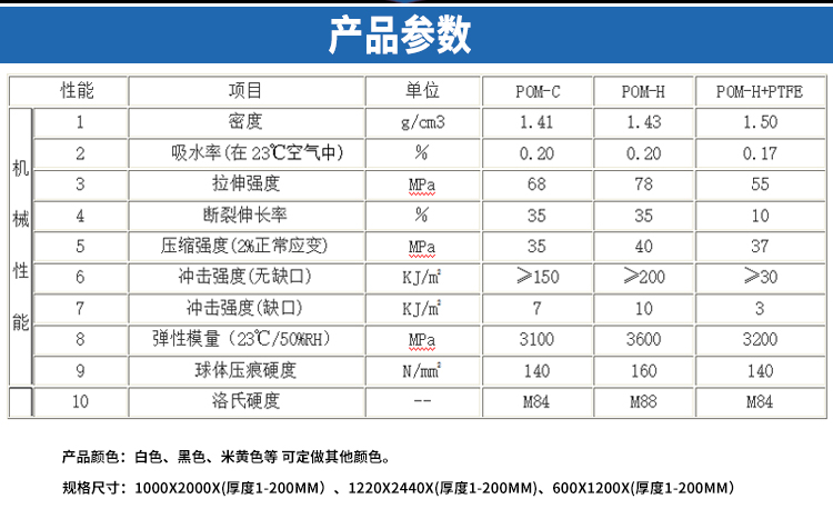 UHMW-PE、含油尼龍、MC尼龍、POM、PP、PE1000,PTFE,PEI,