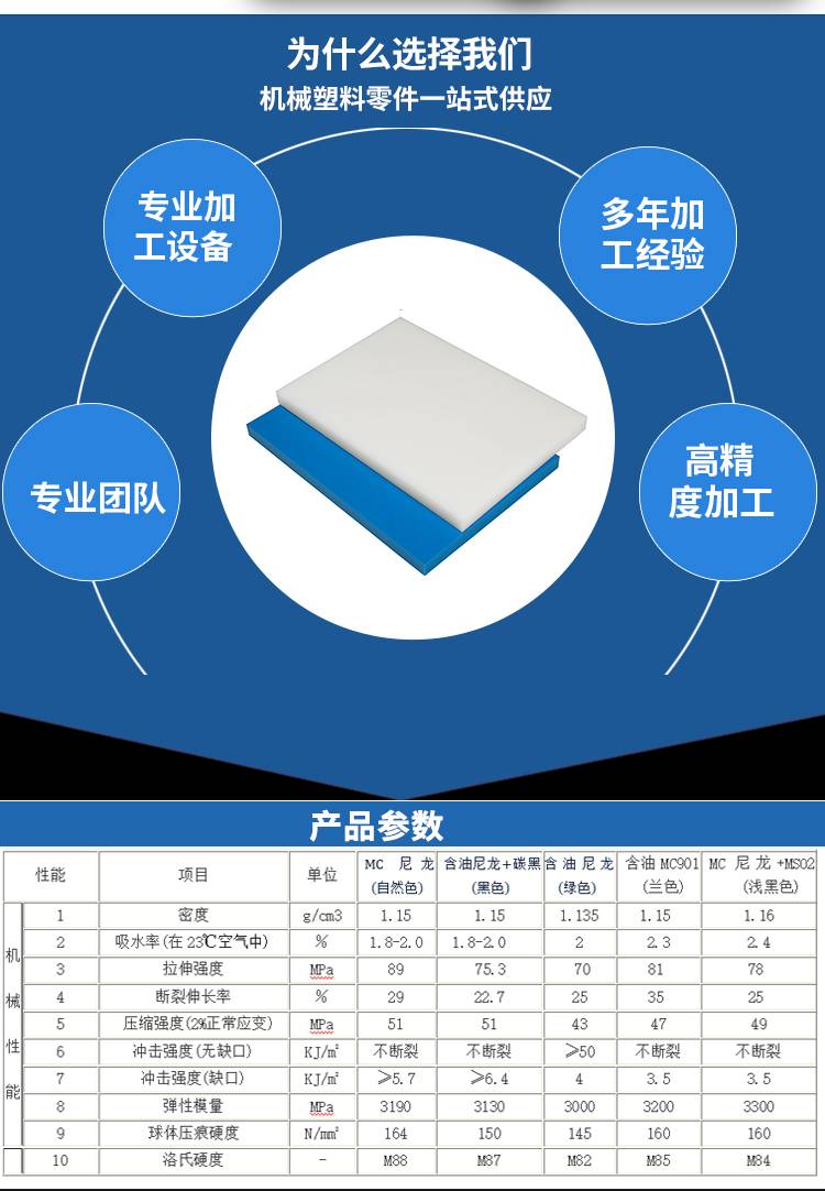 以MC尼龍為基材,在反應(yīng)過程中添加各類改性劑,例如復(fù)合油潤滑劑、二硫化鉬、石墨、玻璃纖維、碳纖維、納米礦粉等、