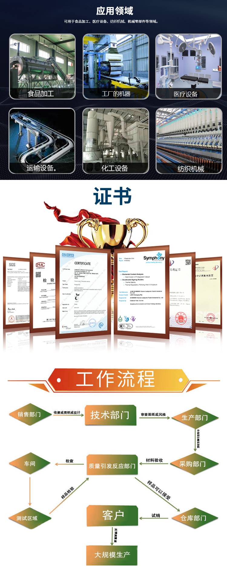 (如:UHMW-PE彎軌、UHMW-PE導(dǎo)軌、UHMW-PE托輥、UHMW-PE板材、UHMW-PE棒材、